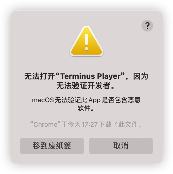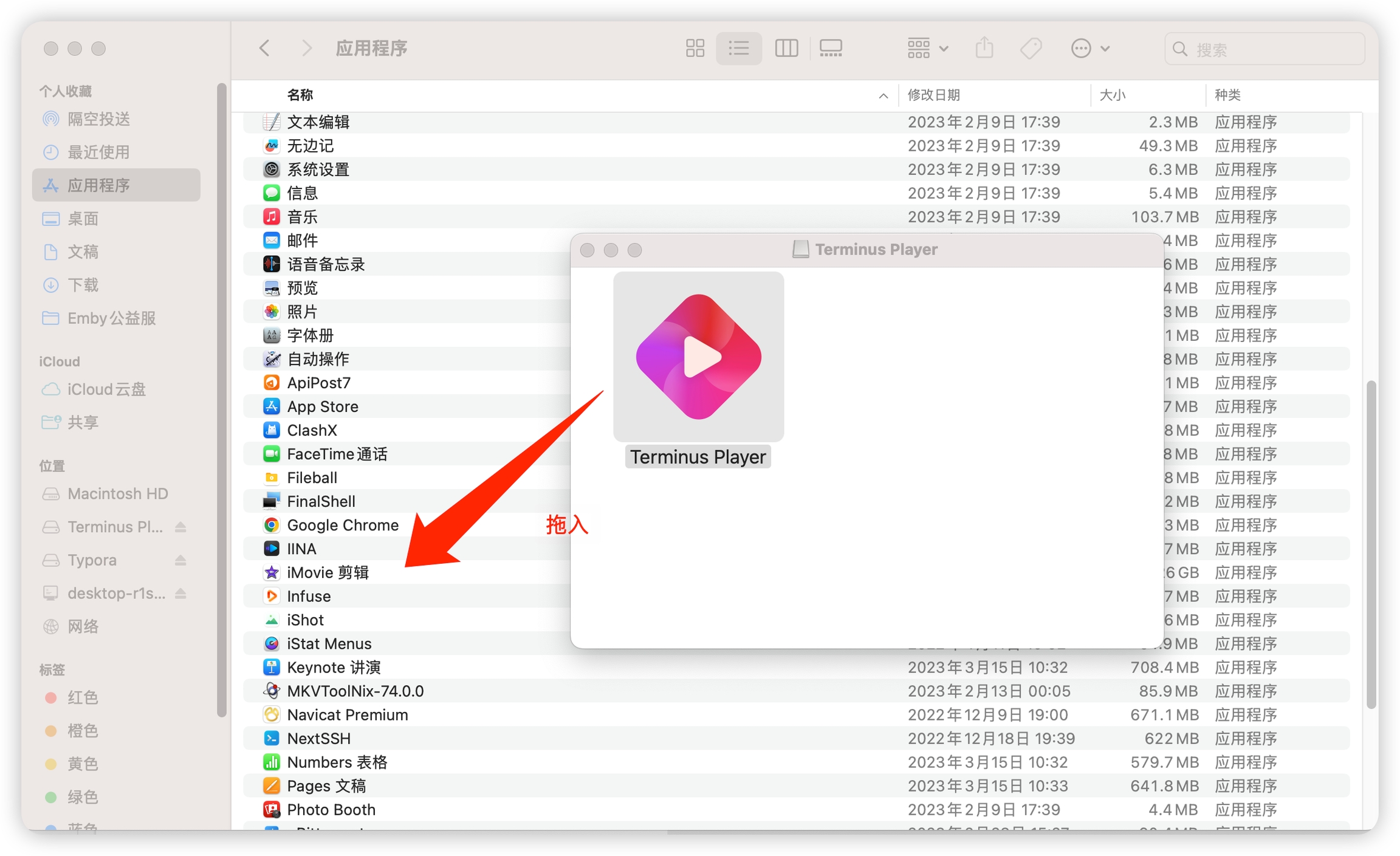 前往安装包网址,下载TerminusPlayer for MacOS.dmg并移入应用程序文件夹。